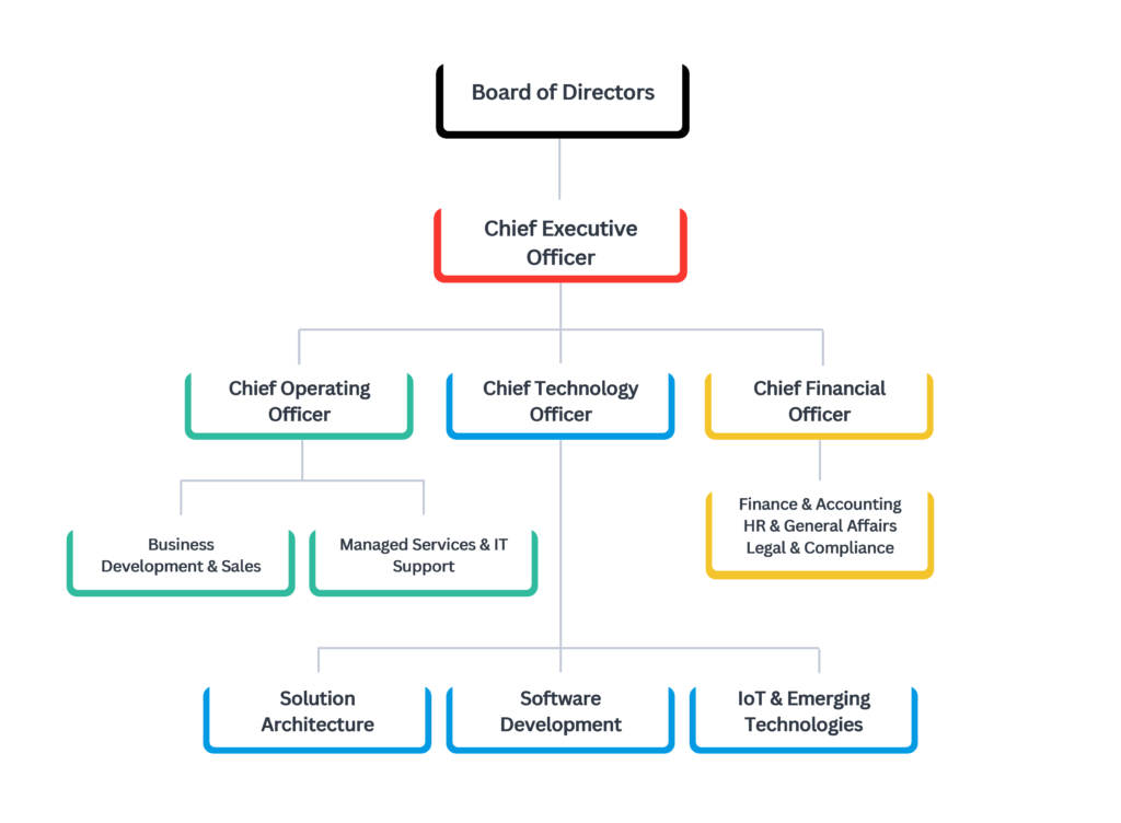 A cross-functional organizational structure that enables efficient coordination between management, technical teams, and client-facing functions to deliver enterprise IT solutions reliably.